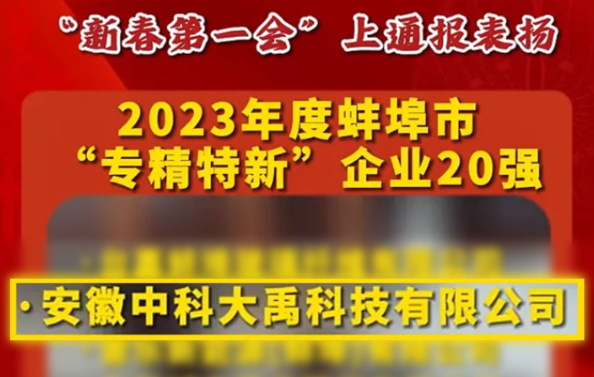 • 中科大禹榮登2023年度蚌埠市“專精特新”企業20強